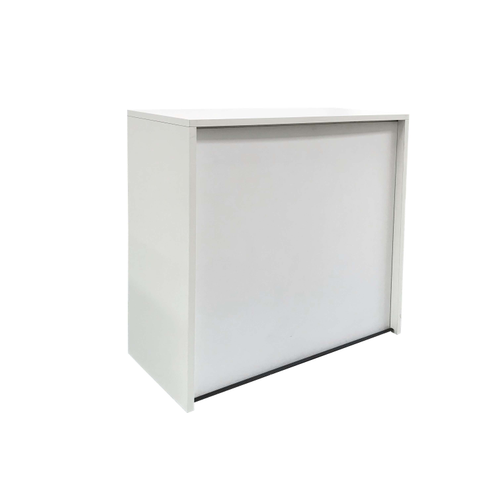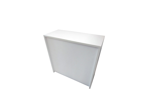 Reception pieghevole in nobilitato adatta ad essere personalizzata nel fronte attraverso un pannello in forex graficabile.