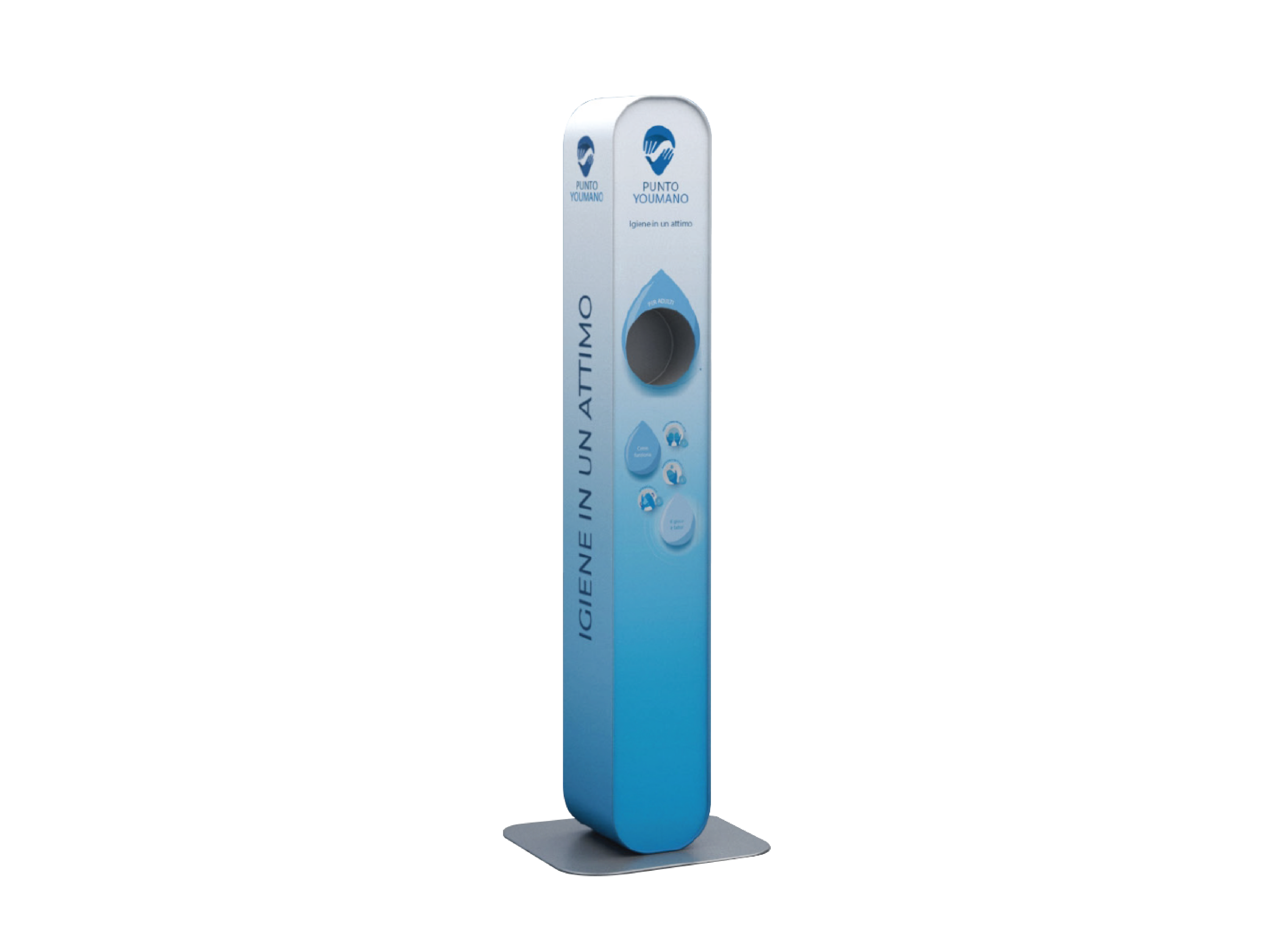 Punto YouMano è un totem per l’erogazione di prodotto disinfettante per mani.